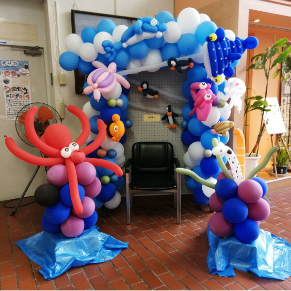 色とりどりのバルーンアートが出迎えるエントランスをはじめ、1階から3階まで、心のこもった作品をゆっくりとご鑑賞いただけます。入場は無料です。