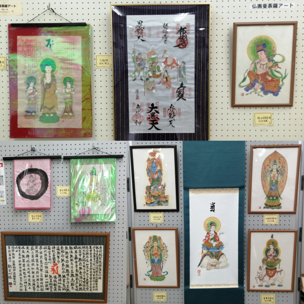 陶芸・絵手紙・仏画・手芸・児童作品など、世代を超えた多彩な作品が並び、館内は“まるごとアート”の空間に包まれています。