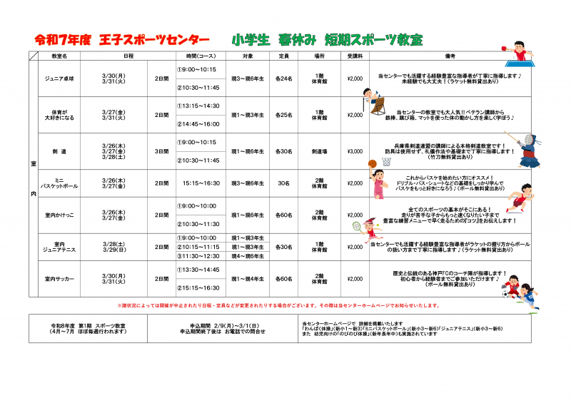※詳しくは教室チラシの「必ずご確認ください」をご覧ください。