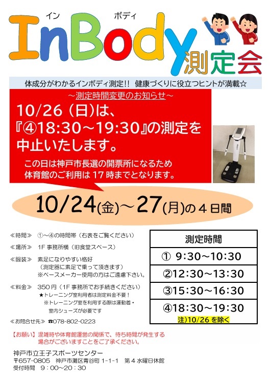 10月の「インボディ測定会」測定時間一部中止のお知らせ