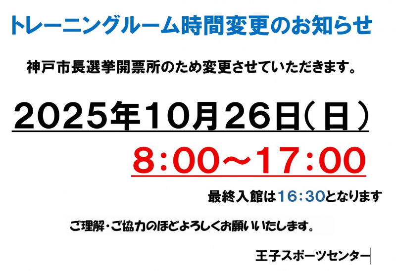 平素は王子スポーツセンターをご利用いただき誠にあり