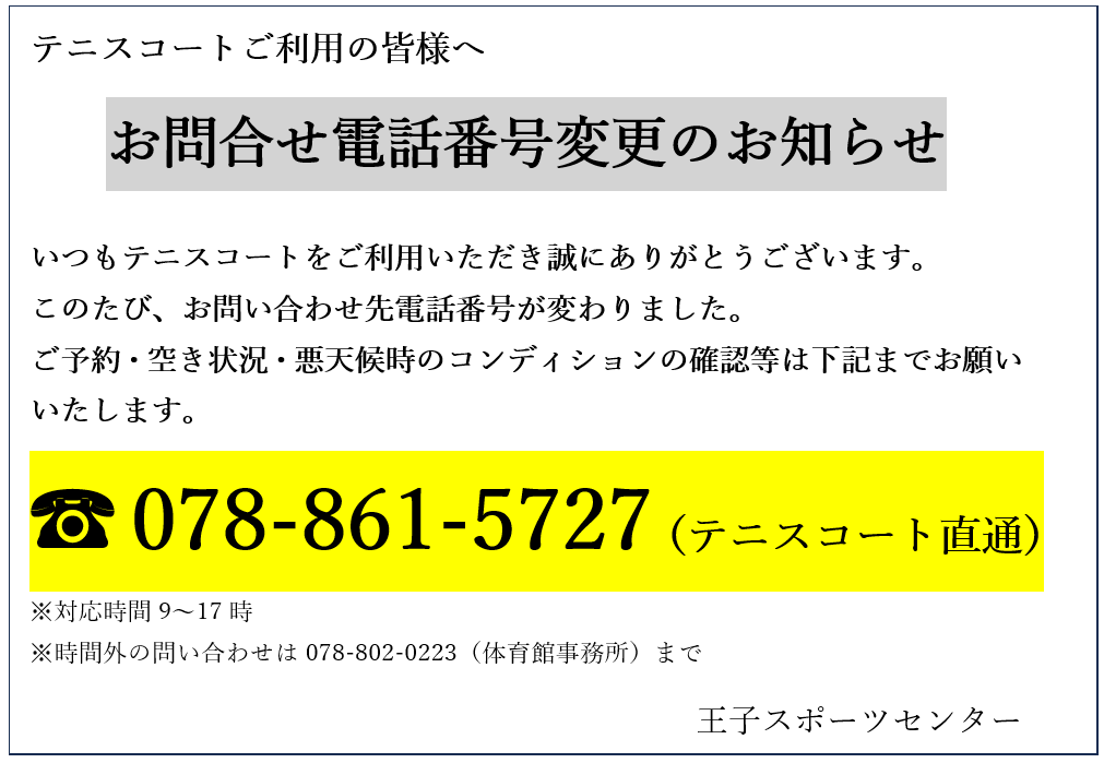 いつも王子スポーツセンターをご利用いただき誠にありがとうございます。