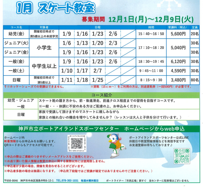 冬休み集中スケート教室とお間違えの無いようお願い致します。