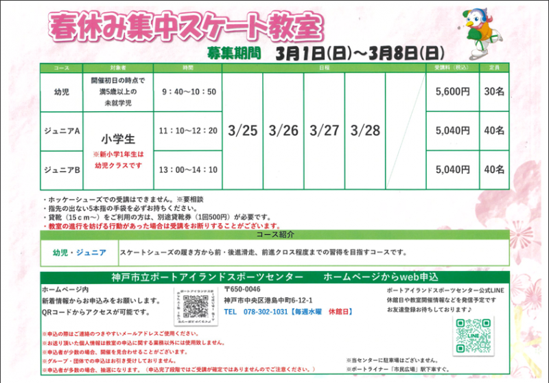 令和7年度春休み集中スケート教室の開催が決定致しました!