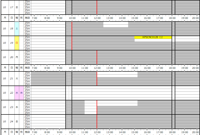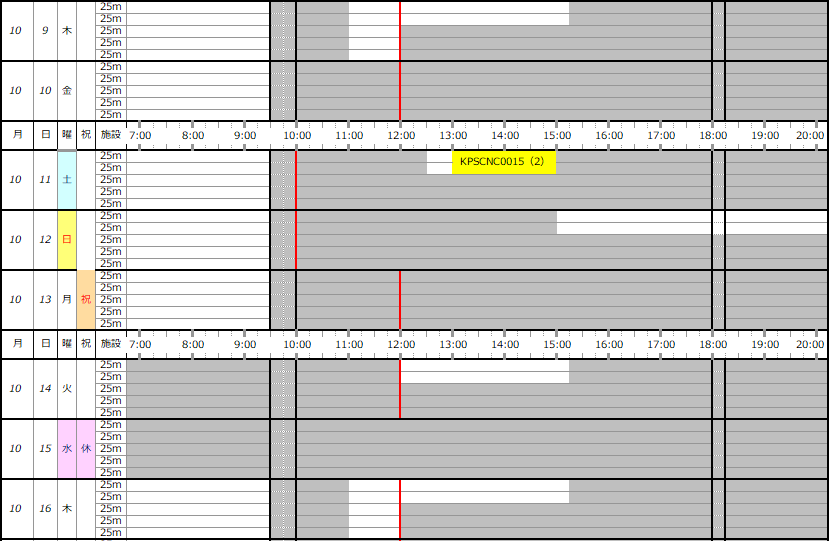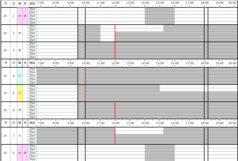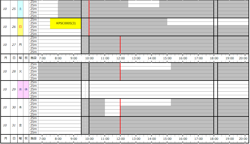 ※この専用利用予約状況表は一般遊泳可能レーンを表すものではありません。