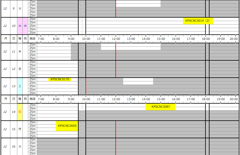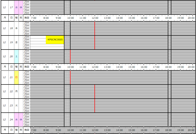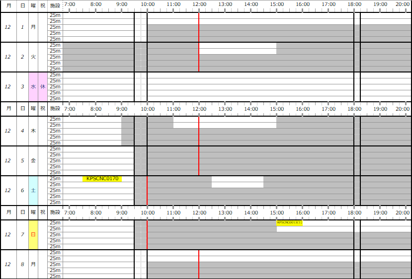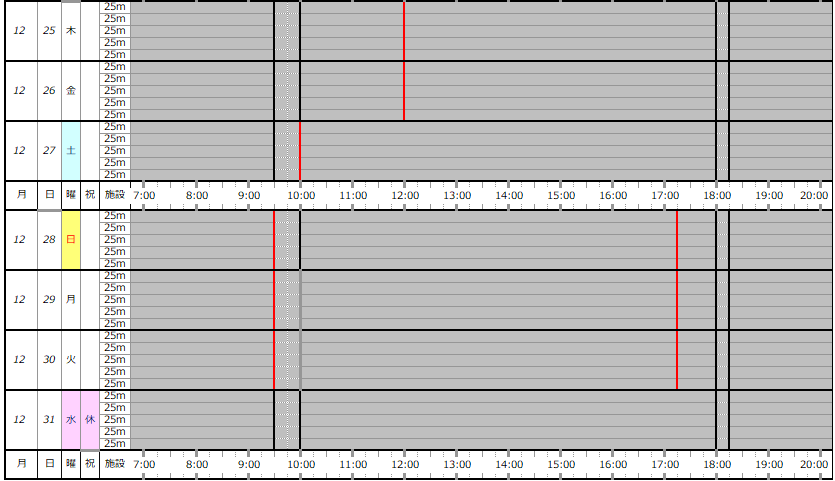 ※この専用利用予約状況表は一般遊泳可能レーンを表すものではありません。