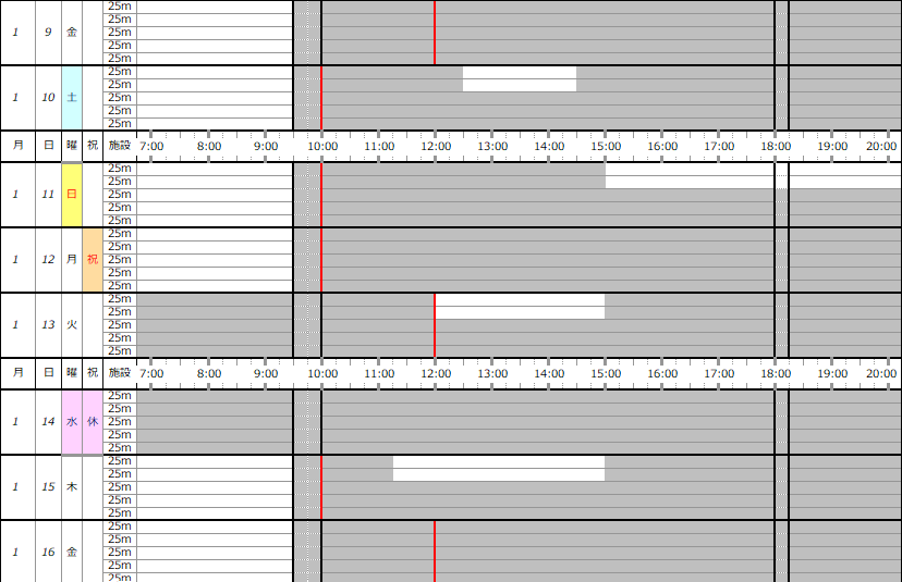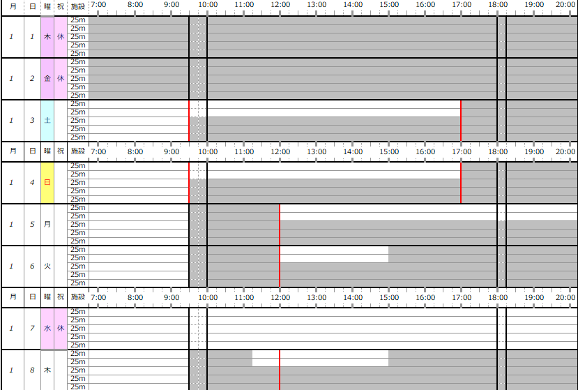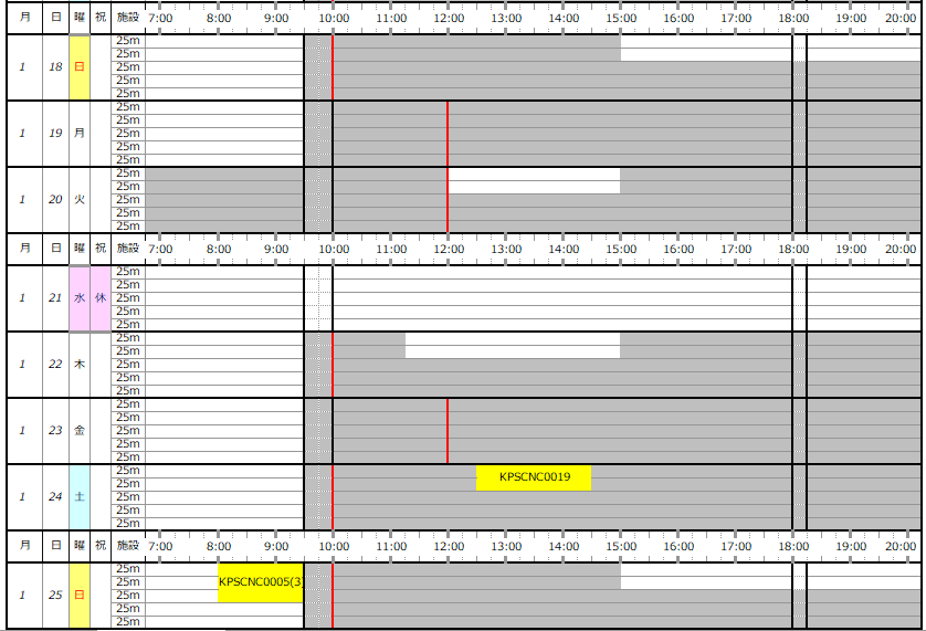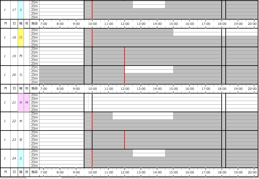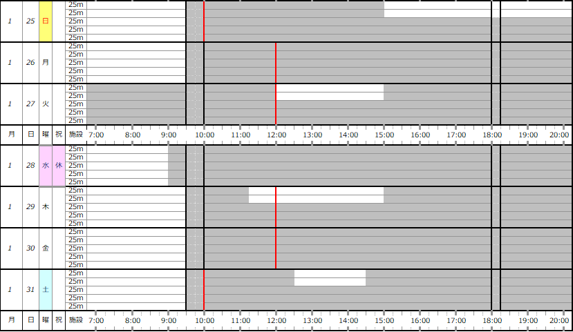 ※この専用利用予約状況表は一般遊泳可能レーンを表すものではありません。