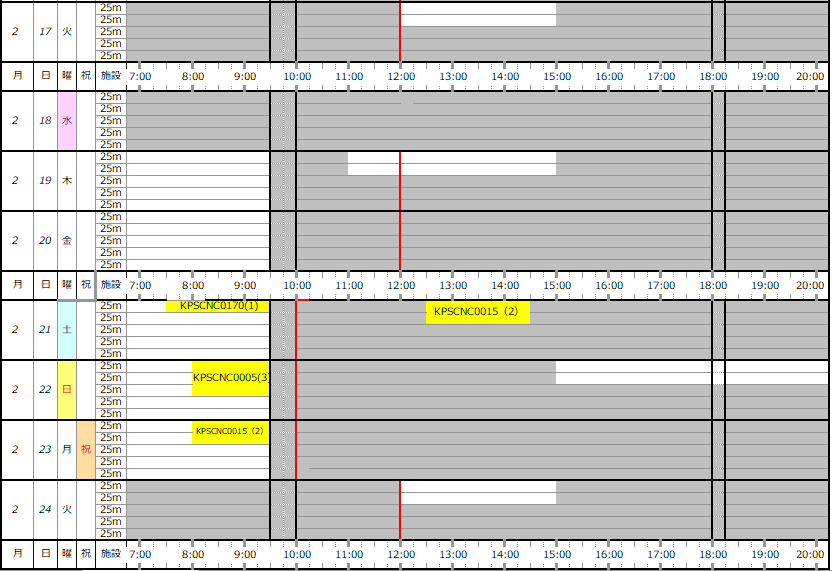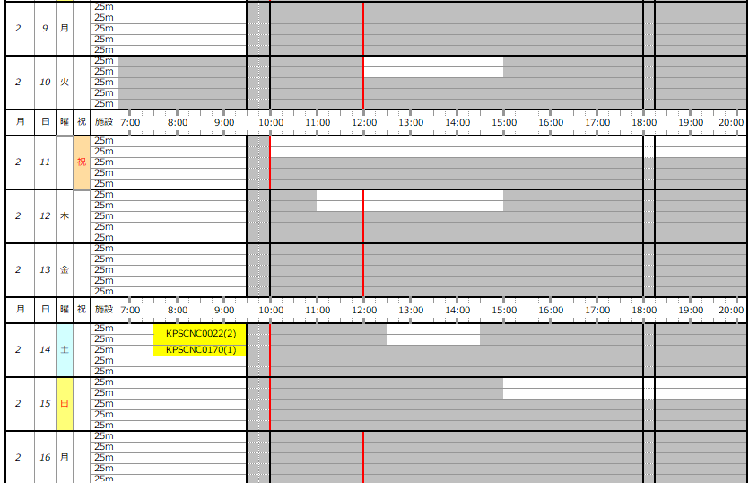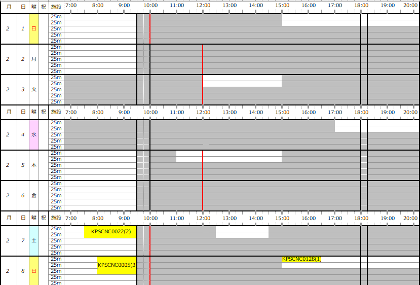 2/1(日)~28(土) 専用利用予約状況表