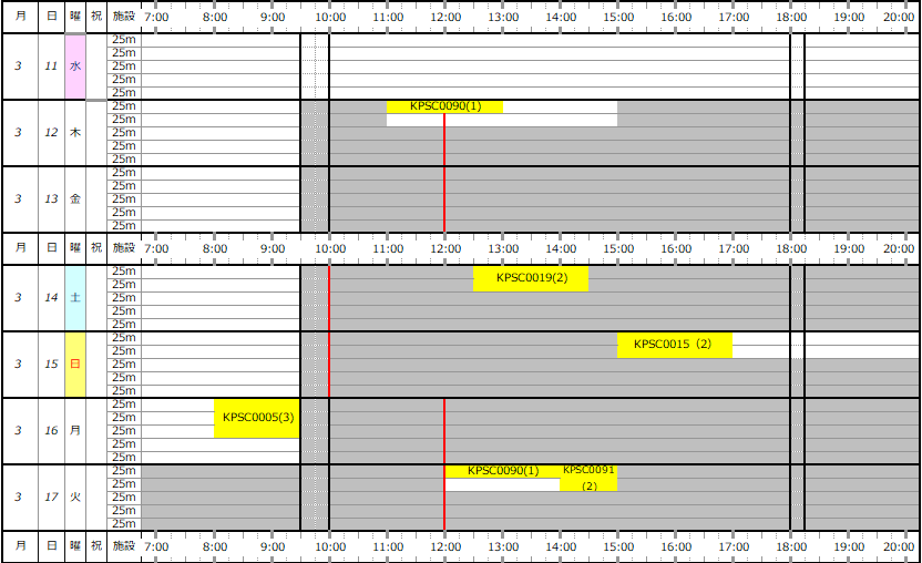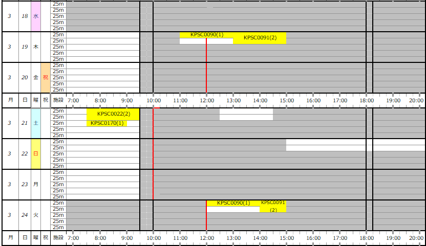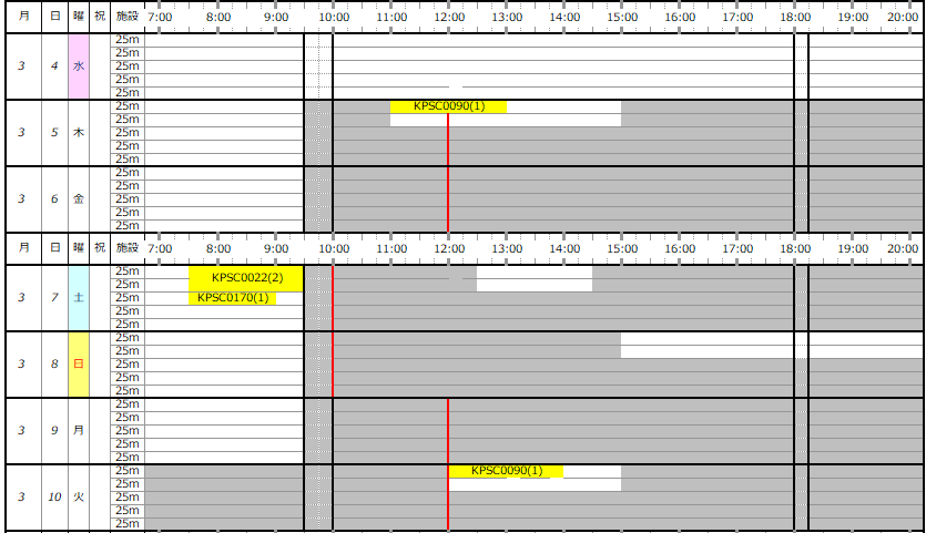 ※この専用利用予約状況表は一般遊泳可能レーンを表すものではありません。