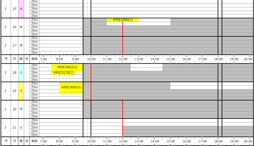 3/1(日)~31(火) 専用利用予約状況表