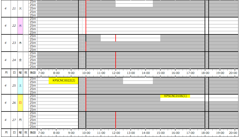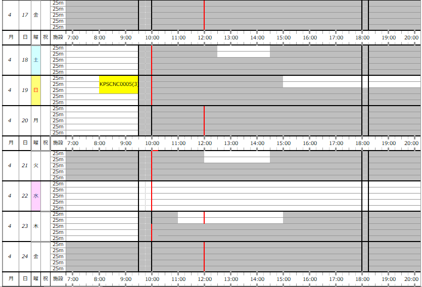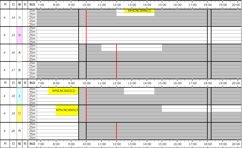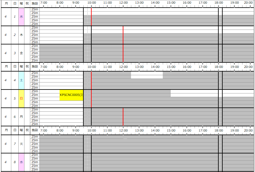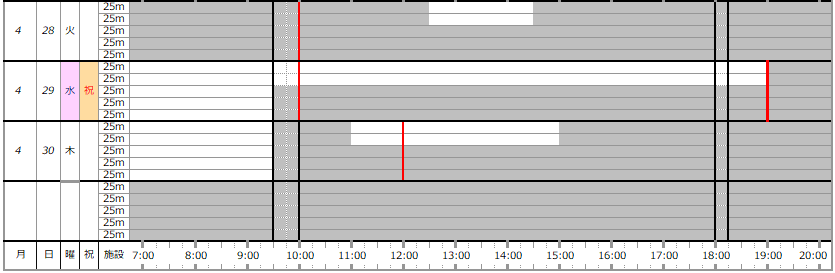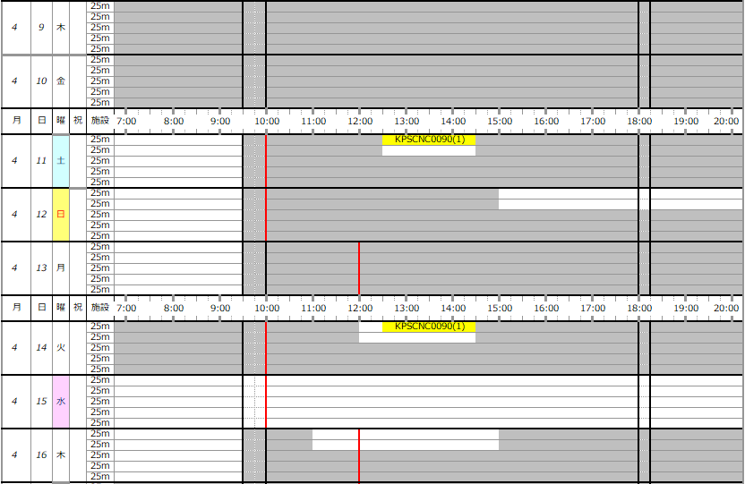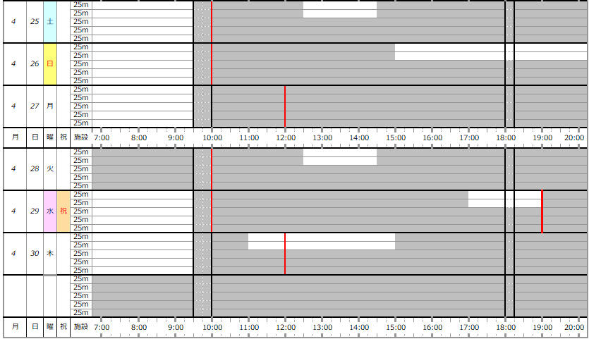 ※この専用利用予約状況表は一般遊泳可能レーンを表すものではありません。