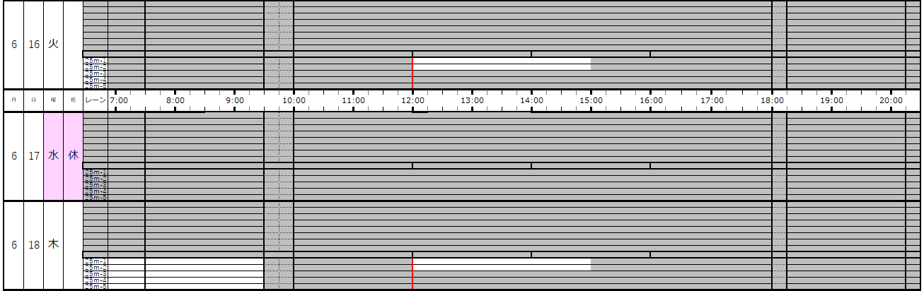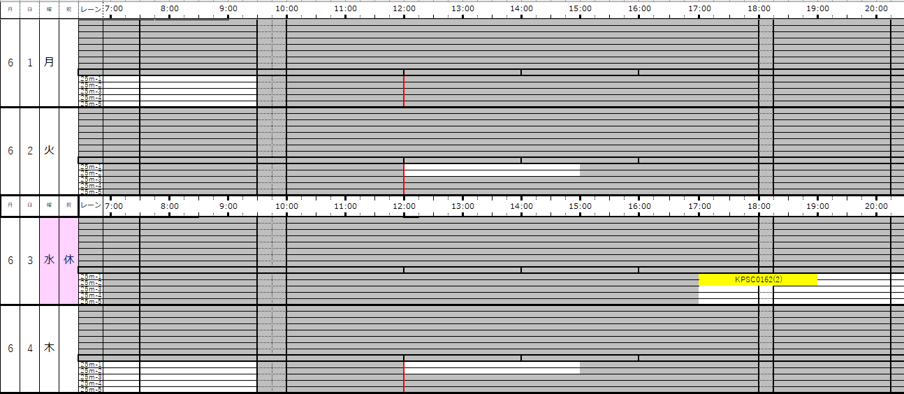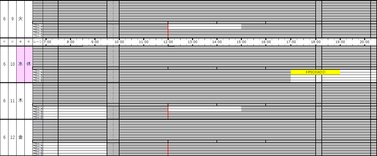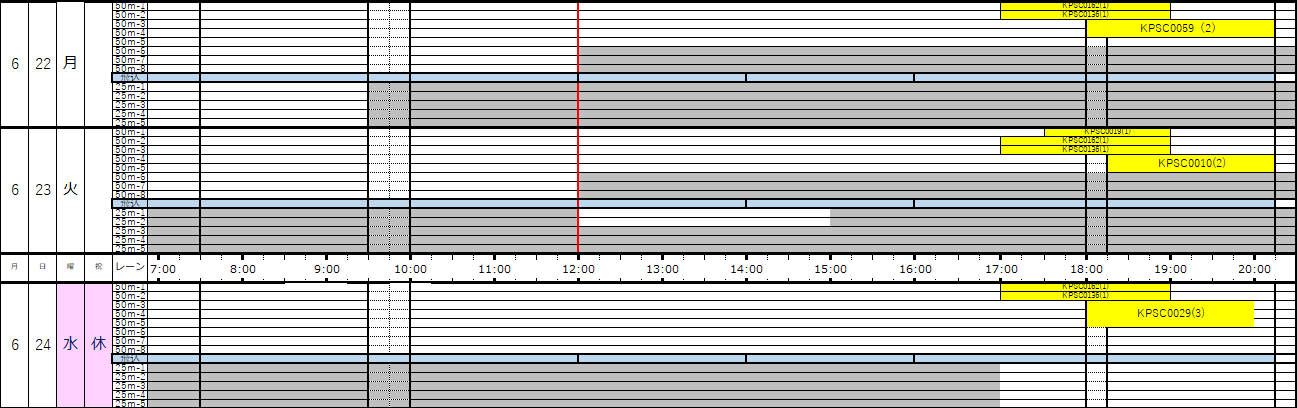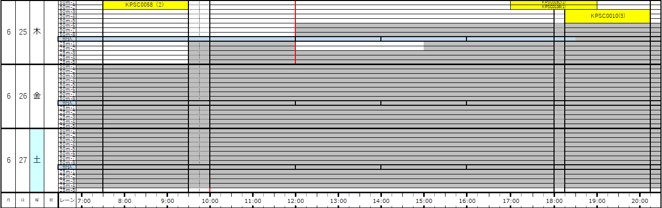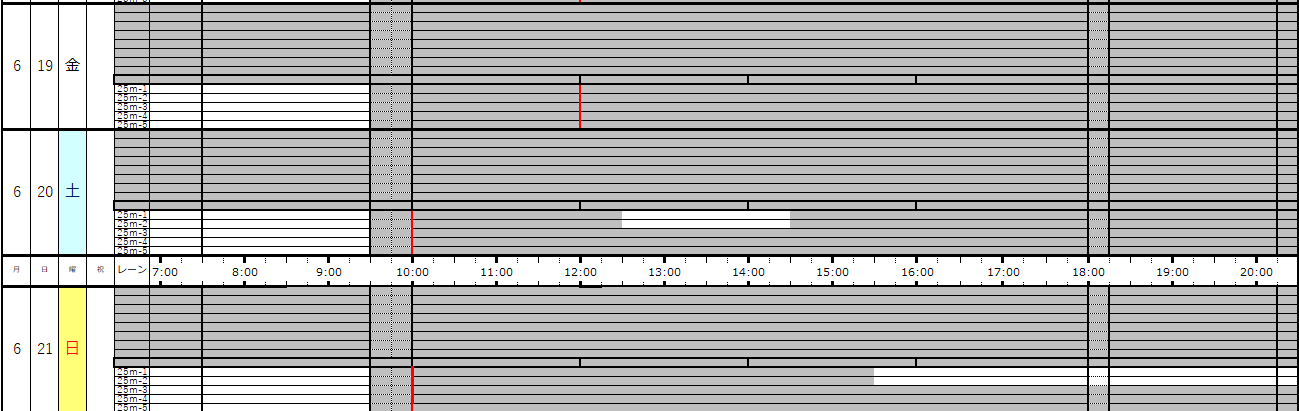 ※この専用利用予約状況表は一般遊泳可能レーンを表すものではありません。