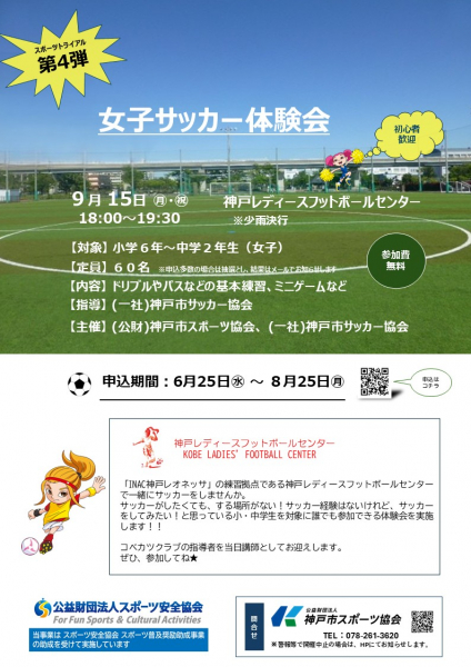 指導は神戸市サッカー協会とアイナックフットボールクラブ株式会社のJFA公認コーチが行い、INAC神戸レオネッサ選手との交流なども計画しています。