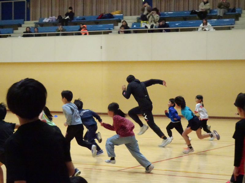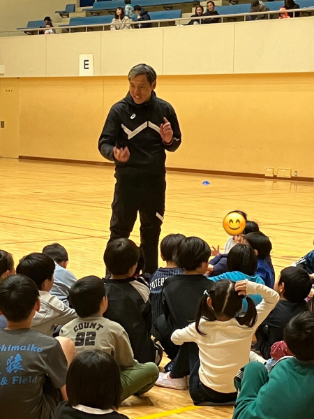<かけっこ教室>元男子日本代表 金丸祐三さん