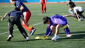 この教室では、コーチ陣を、陸上競技の教室で定評がありサッカーのクラブチーム等の指導も行っているT&F.net KOBEの皆さんにお願いし、単に前に走る能力だけでなく、球技に共通して重要な横移動や切返しを速やかに行うためのテクニックやその練習方法などを、頭の考えと体の動きを連動させるコオーディネーショントレーニングも取り入れ、分かりやすい説明や実演、道具を用いて遊びの要素も散りばめながら楽しく指導していただきました。